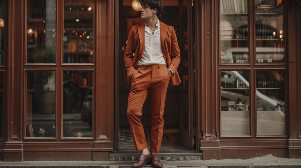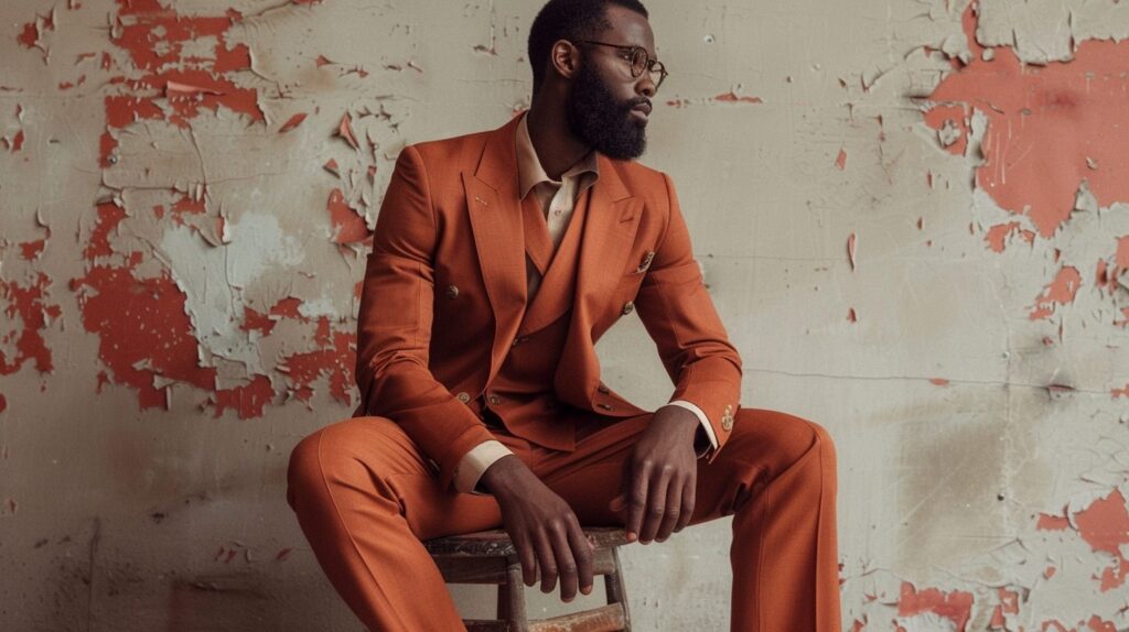 In relaxed environments like summer gatherings or brunches, a lighter orange suit—like rust or burnt orange—works great. It keeps things vibrant without feeling too loud.
