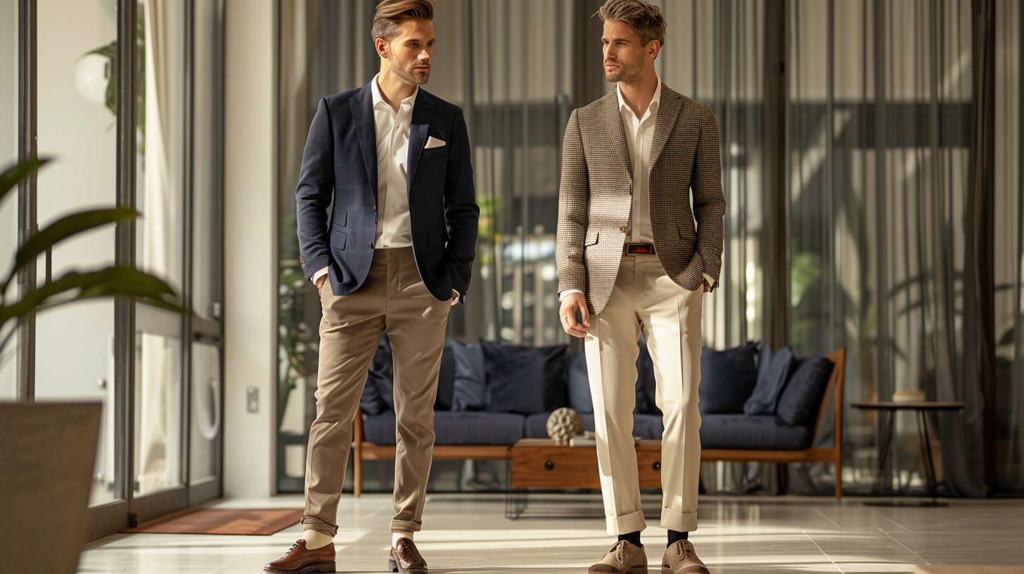 - Pair with loafers or derby shoes for balance